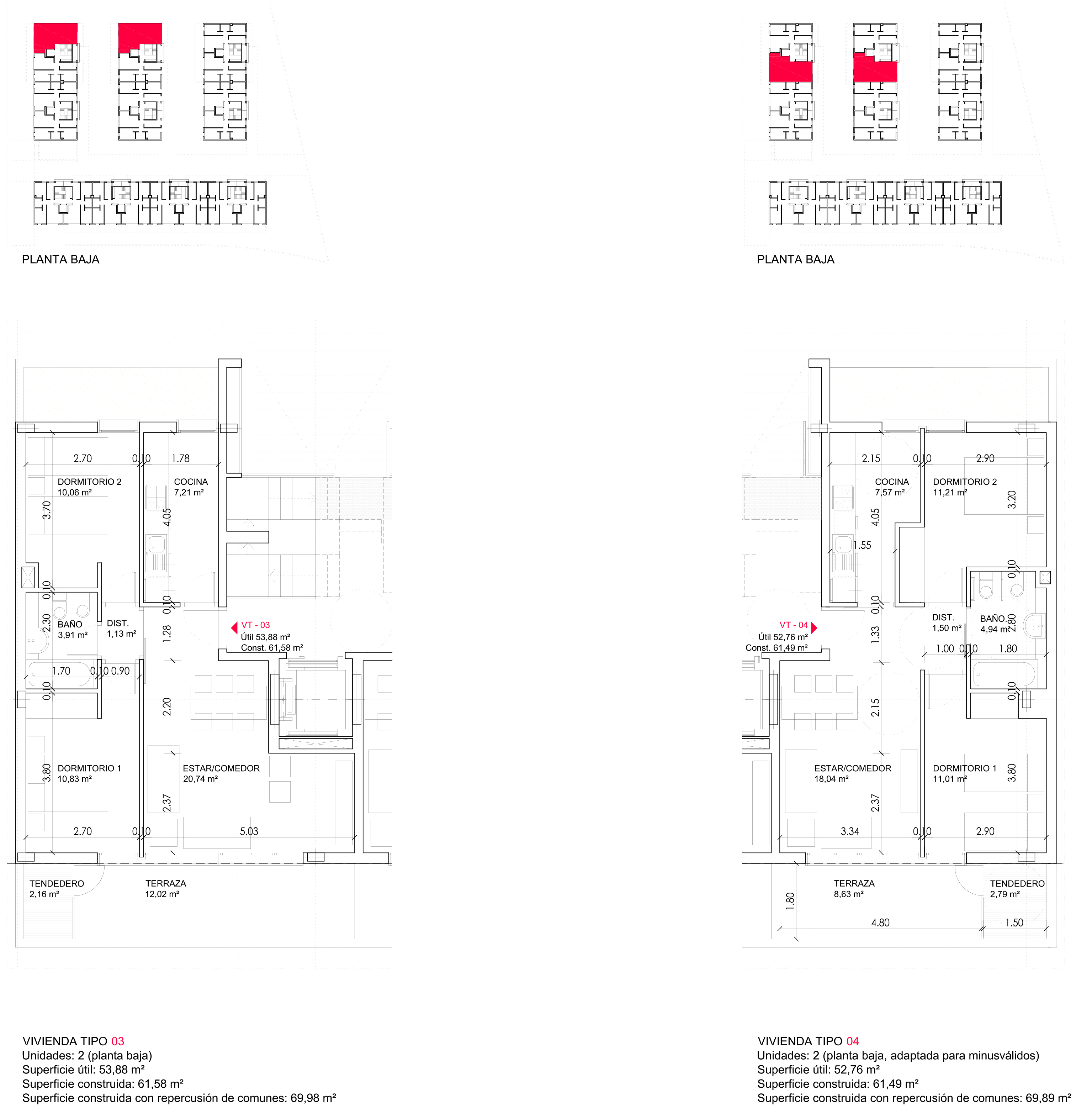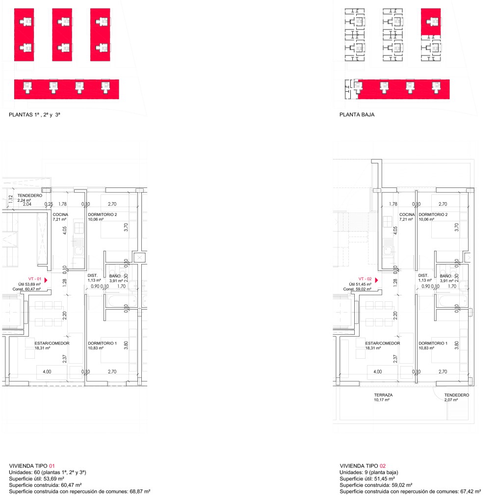 Todas las viviendas tienen una superficie construida total, incluyendo la repercusión de zonas comunes, inferior a 70 m².