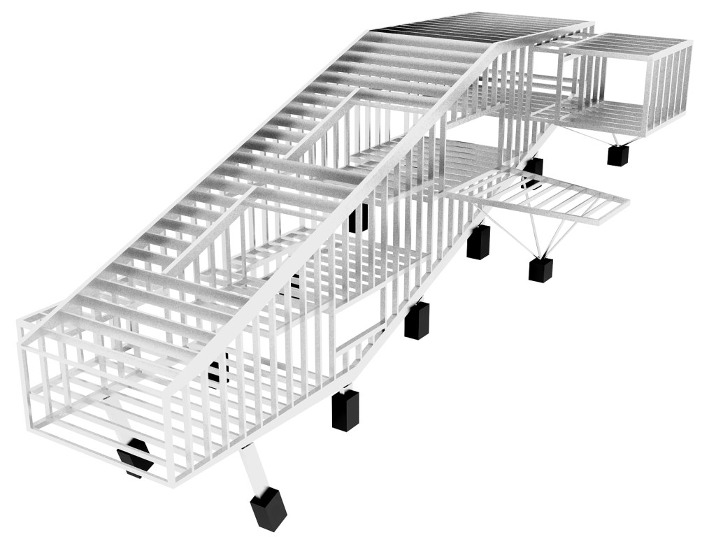 Se propone adaptar la construcción a dichos condicionantes, buscando una construcción de tipo ligero. La ligereza de la estructura no sólo supone un ahorro de material y, por tanto, de coste directo de adquisición de material, sino que reduce la cantidad de cimentación y excavaciones necesarias al mínimo imprescindible limitando a su vez la cantidad de obra “húmeda” así como farragosos trabajos preparatorios.